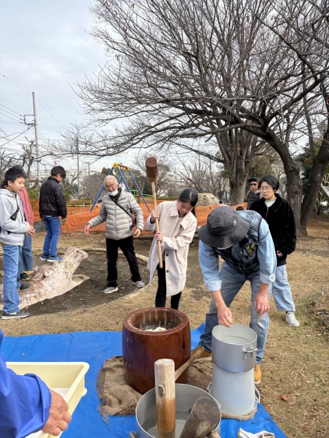 お餅つき 12/20(土)、餅つきに参加しました。こどもたちもお箸を配ったりお手伝いをしたり、お餅もつかせてもらいました。つきたてのお餅美味しかったです!