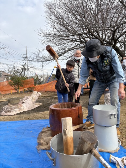 お餅つき 12/20(土)、餅つきに参加しました。こどもたちもお箸を配ったりお手伝いをしたり、お餅もつかせてもらいました。つきたてのお餅美味しかったです!